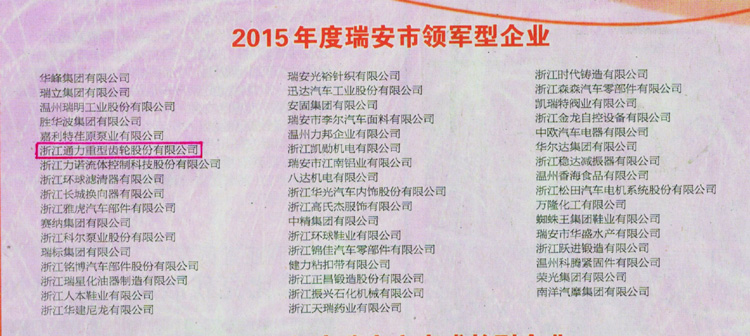 為鼓勵(lì)先進(jìn),樹立典型,瑞安市委、市政府在3月25日召開的全市經(jīng)濟(jì)工作會議上,授予浙江通力2015年度瑞安市領(lǐng)軍型企業(yè)并頒發(fā)獎(jiǎng)牌。