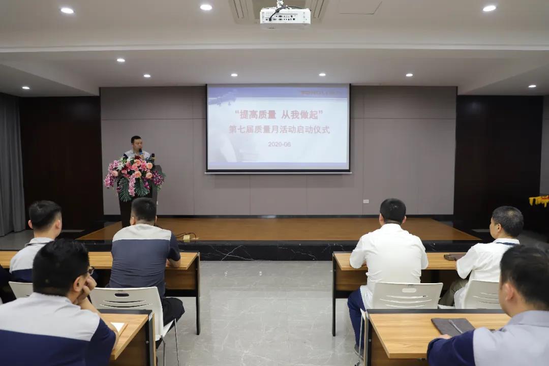 大會由質(zhì)量部楊克楷主持,首先由質(zhì)量部應(yīng)建興做質(zhì)量工作匯報,在匯報中應(yīng)建興總結(jié)了今年和近幾年的產(chǎn)品質(zhì)量狀況,通過多角度多方面分析了當(dāng)前依舊存在的問題并提出一定建議,引起在場生產(chǎn)骨干們的高度重視。而后由技術(shù)部何蕓匯報了本屆質(zhì)量月活動的各項重點攻關(guān)任務(wù),并分別羅列了攻關(guān)的期限以激發(fā)員工踴躍參與;同時,本屆質(zhì)量月活動還加入了多場生產(chǎn)工作規(guī)范培訓(xùn),以提升員工日常工作規(guī)范性,增加效率。