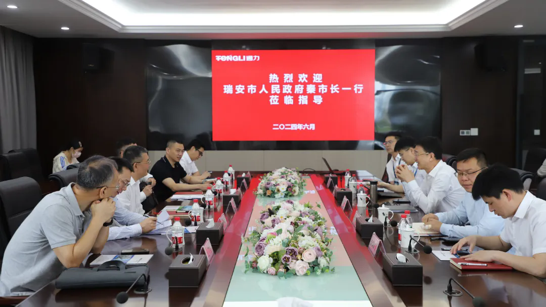 6月3日上午,瑞安市委副書記、市長秦肖率隊蒞臨通力科技開展深入實施“三化四強(qiáng)五爭”行動專題調(diào)研活動。通力科技董事長項建忠、總經(jīng)理項純堅等公司領(lǐng)導(dǎo)熱情接待了調(diào)研組一行。