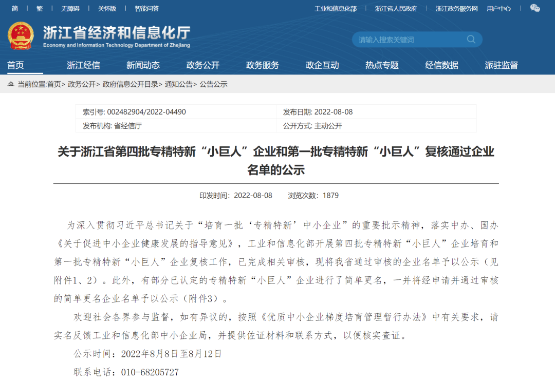 日前,工業和信息化部公示了最新一批專精特新“小巨人”企業名單,通力科技憑借卓越的技術研發實力和自主創新能力躍然上榜,繼2020榮獲浙江省“隱形冠軍”企業之后,再獲殊榮,成功入選國家級專精特新“小巨人”。