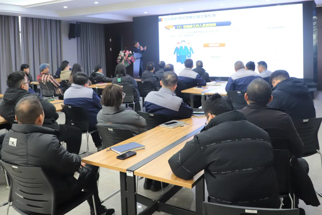 王亮律師以預防職務犯罪為主線,從職務犯罪的概念、類型、預防措施等方面展開講解,以真實案例為“活教材”,對企業人員常見罪名的法律規定、構成要件及量刑情況進行深入淺出的講解,深刻闡述職務犯罪的嚴重后果和預防職務犯罪的重要性。